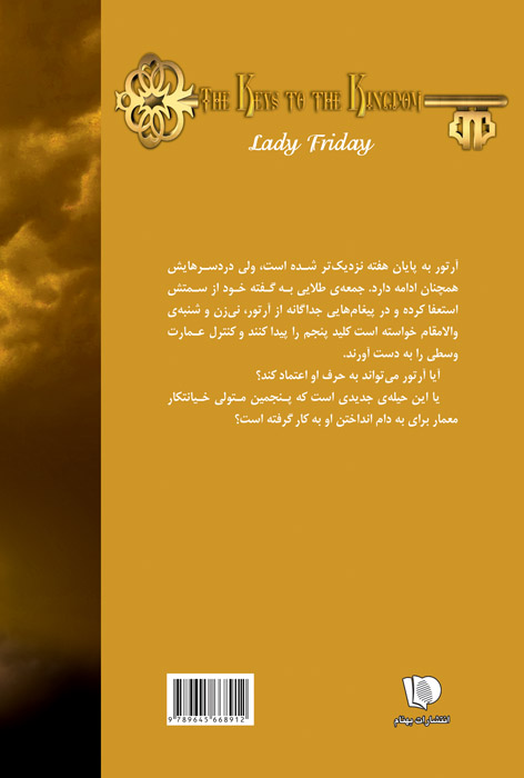 📖 آرتور به پايان هفته نزديكتر شده است ولى دردسرهايش همچنان ادامه دارد. جمعهى طلايى به گفته خود از سمتش استعفا كرده و در پيغامهايى جداگانه از آرتور، نىزن و شنبهى والامقام خواسته است كليد پنجم را پيدا كنند و كنترل عمارت وسطى را به دست آورند. آيا آرتور مىتواند به حرف او اعتماد كند يا اين حيلهى جديدى است كه پنجمين متولى خيانتكار معمار براى به دام انداختن او به كار گرفته است؟
